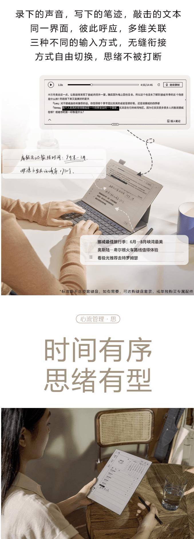 硬件配置方面,AINOTE2采用10.65英寸黑白墨水屏,分辨率达1920x2560,像素密度300PPI,支持科大讯飞自主研发的I-Pencil电磁笔,实现4096级压感手写体验迷人的一。机身采用镁铝合金材质,在保证强度的同时实现极致轻薄什么文案容易上热门。存储组合为4GB运行内存搭配64GB存储空间,内置4000mAh电池,满足长时间阅读与书写需求情趣拍照动作怎么摆。