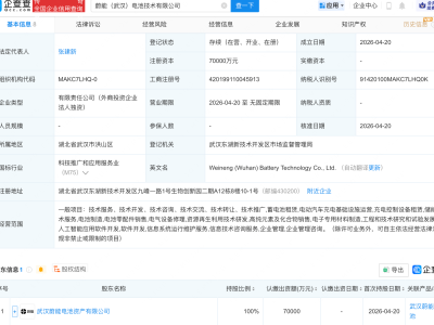 武汉蔚能电池成立电池技术新公司,含AI业务