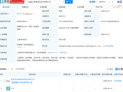 盘古智能等在上海成立聚能液压技术公司