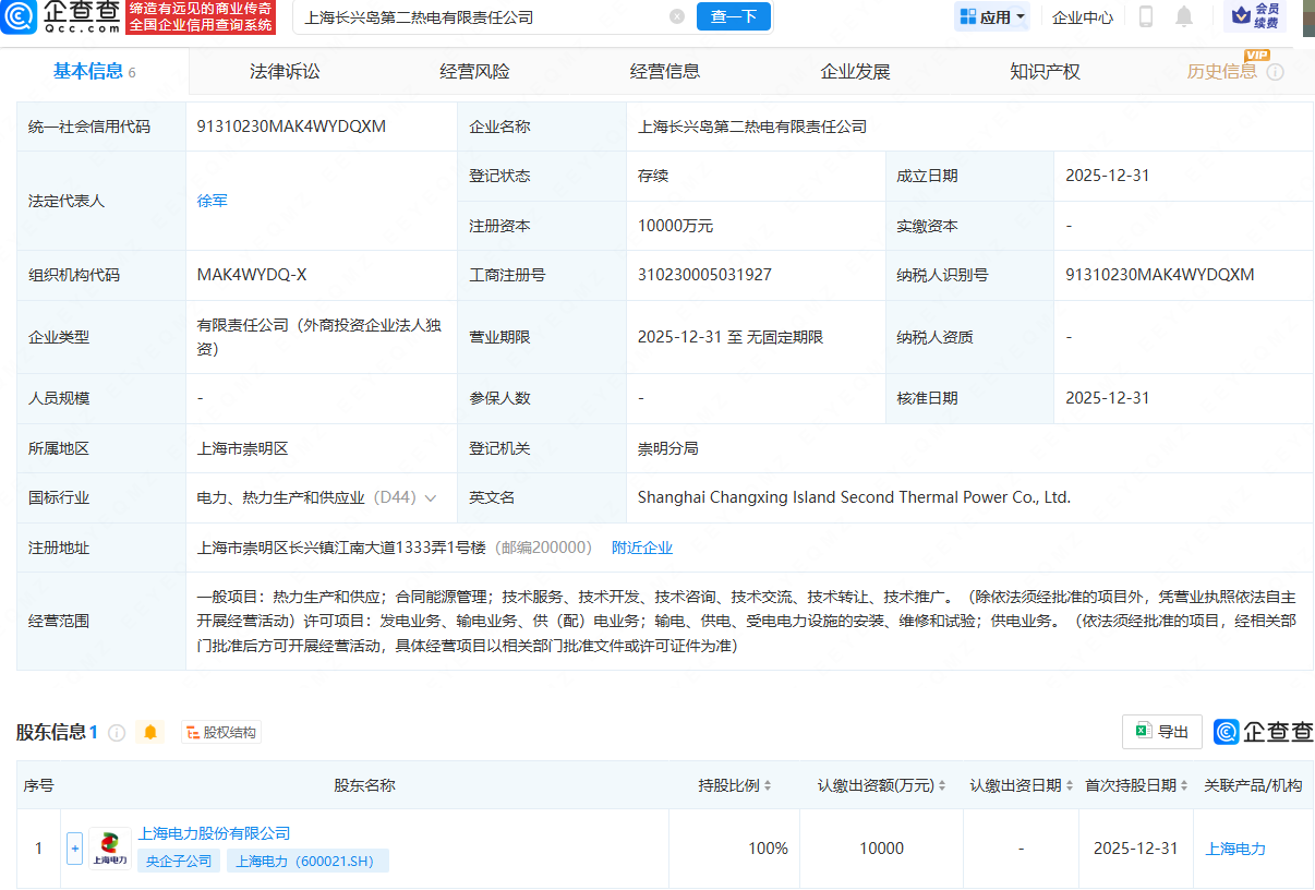 企查查APP显示,近日,上海长兴岛第二热电有限责任公司成立,法定代表人为徐军,注册资本为1亿元,经营范围包含:热力生产和供应;合同能源管理;发电业务、输电业务、供(配)电业务;供电业务等性感内衣女装。企查查股权穿透显示,该公司由上海电力(600021)全资持股68283人体体艺图片网undefined。