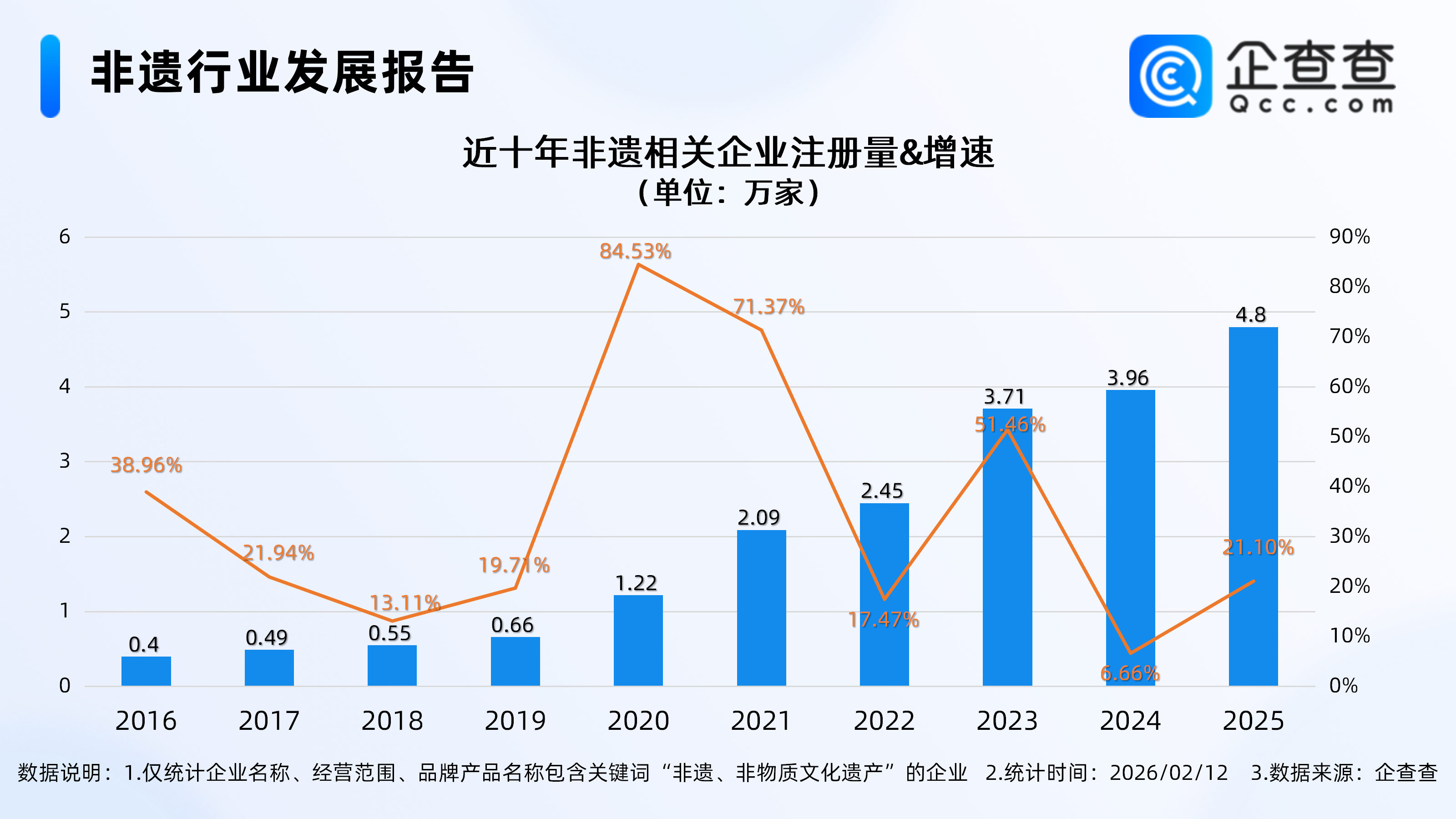 企查查数据显示,截至2月12日,国内现存非遗相关企业18.54万家美女图私照片。近十年非遗相关企业注册量呈持续增长态势,其中2020年全年注册1.22万家相关企业,同比增长84.53%,达近十年注册量增速峰值美女网红的死亡直播。2025年全年注册4.8万家非遗相关企业,同比增长21.10%,创近十年注册量新高撩人又欲又撩人的男图片。截至目前,今年已注册非遗相关企业0.51万家李红 央视主持。