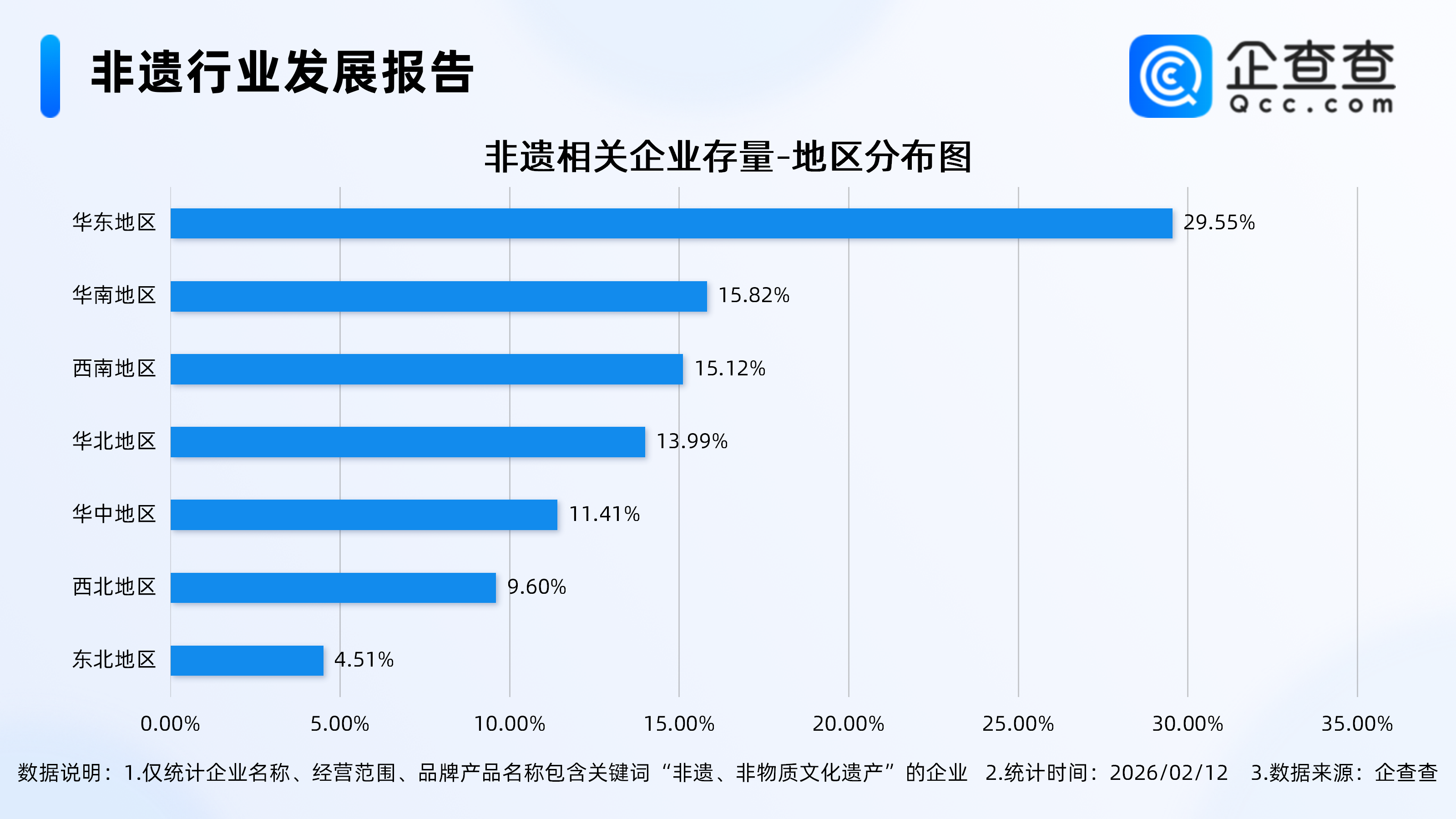 企查查数据显示,从地区分布来看,非遗相关企业多分布在华东地区,占比达29.55%2026壁纸。其次,分布在华南地区、西南地区的非遗相关企业分别占比15.82%、15.12%性感照片文案。