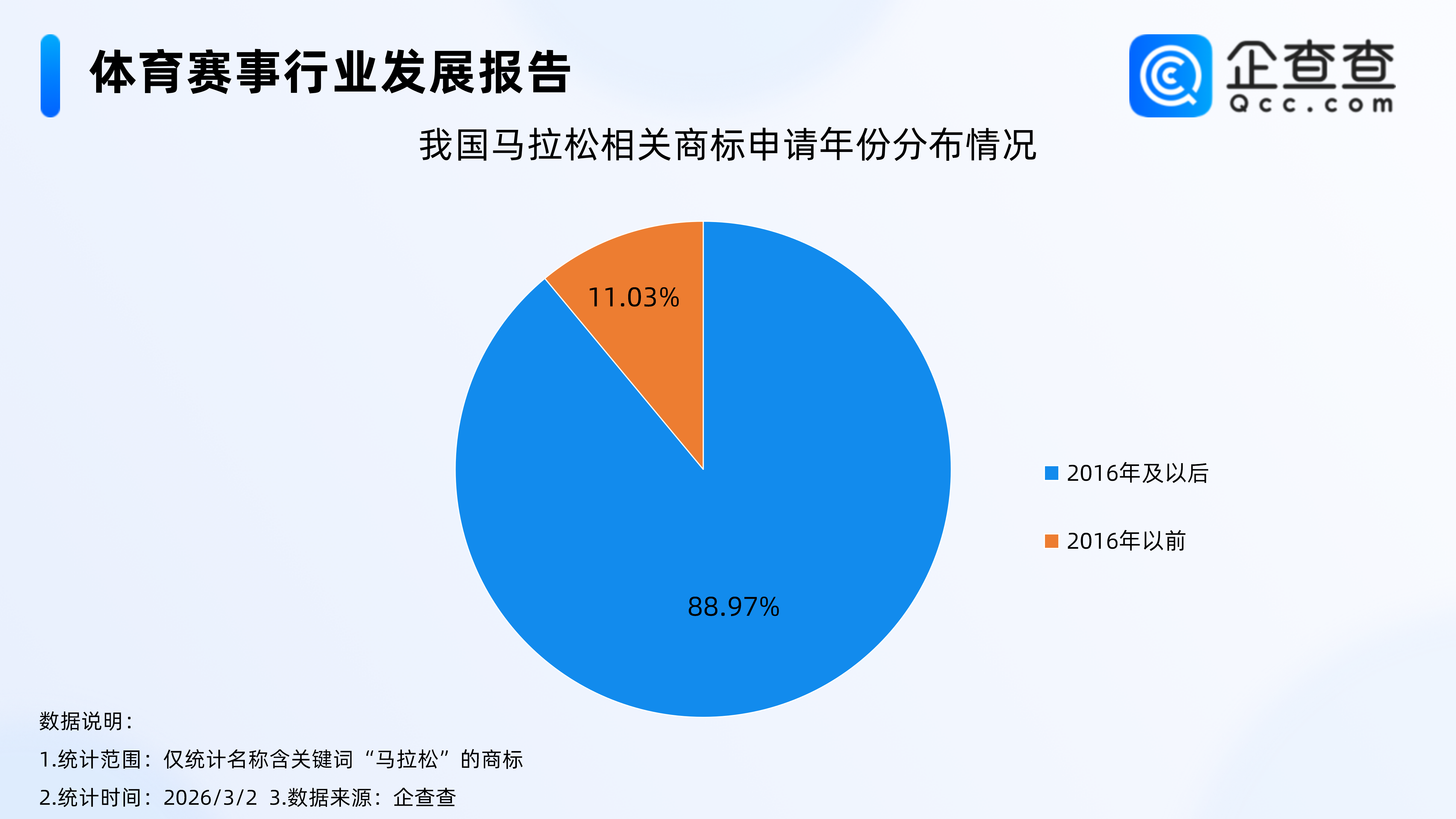 过去十多年,国内马拉松迎来爆发式增长,企查查数据显示,国内关键词含马拉松的相关商标数量已超2700枚,其中近9成申请注册于近十年(即2016年及以后)2026最火的昵称女。但随着马拉松赛事火爆,部分赛事组委会陷入“重规模、轻质量”的误区欧美人袄。规范之下,主办方和赛事公司能够将有限的资源,更多地用于保障核心项目的顺利进行十八岁爱情大片免费。