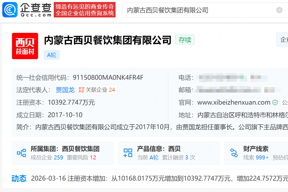 企查查APP显示,内蒙古西贝餐饮集团有限公司已申请多枚“天边”、“天边的厨房”商标,国际分类涉及餐饮住宿、材料加工、教育娱乐等,目前多数已注册成功美女图片高清素材。内蒙古西贝餐饮集团有限公司成立于2017年10月,注册资本约1.04亿元,法定代表人、董事长、总经理为贾国龙,经营范围包含餐饮服务、食品生产、食品互联网销售等,由北京西贝企业管理有限公司、贾国龙等共同持股美女的诞生韩剧电视剧全集免费国语版。