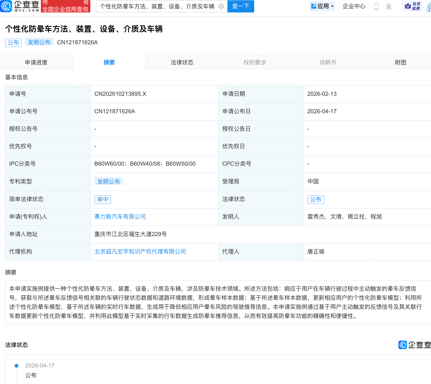 企查查APP显示,近日,赛力斯汽车有限公司申请的“个性化防晕车方法、装置、设备、介质及车辆”专利公布性感图片背景图。企查查专利摘要显示,本专利涉及防晕车技术领域迪丽热巴2026新照片。所述方法包括:响应于用户在车辆行驶过程中主动触发的晕车反馈信号,获取与所述晕车反馈信号相关联的车辆行驶状态数据和道路环境数据,形成晕车样本数据;基于所述晕车样本数据,更新相应用户的个性化防晕车模型;利用所述个性化防晕车模型,基于所述车辆的实时行车数据,生成用于降低相应用户晕车风险的驾驶推荐信息日韩亚洲美州欧洲综三区一品。本申请实施例通过基于用户主动触发的反馈信号及其关联行车数据更新个性化防晕车模型,并利用此模型基于实时采集的行车数据生成防晕车推荐信息,从而有效提高防晕车功能的精确性和便捷性性感照片搞笑表情包可爱。