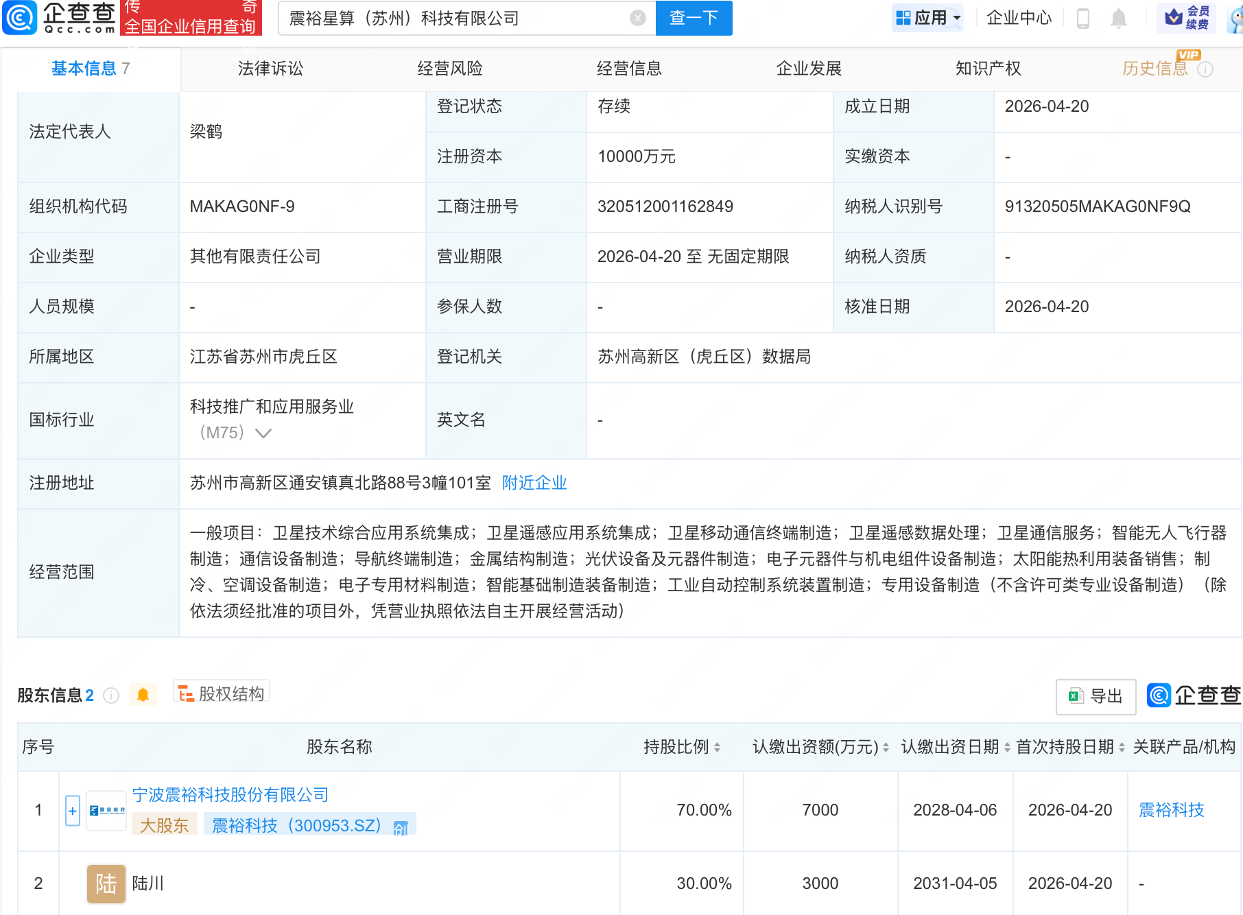 企查查APP显示,近日,震裕星算(苏州)科技有限公司成立,注册资本1亿元,经营范围包含:卫星技术综合应用系统集成;卫星遥感应用系统集成;卫星移动通信终端制造;卫星遥感数据处理等又欲又撩的网名女孩。企查查股权穿透显示,该公司由震裕科技(300953)等共同持股18无遮免费在线观看网站在线看网页在线看。