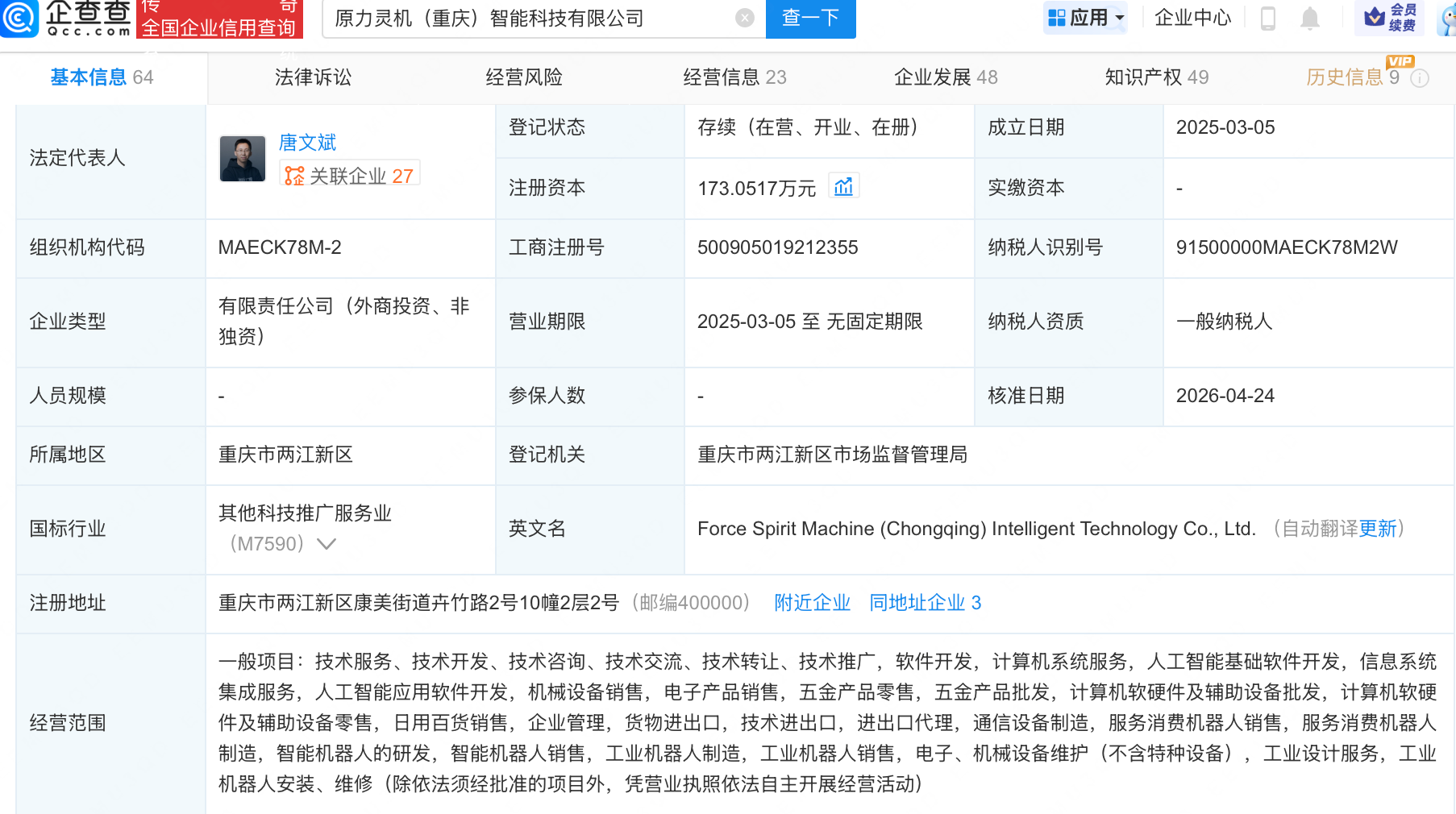 企查查APP显示,近日,原力灵机(重庆)智能科技有限公司发生工商变更,新增华勤技术(603296)全资子公司上海摩勤智能技术有限公司等为股东,同时注册资本增至173.05万元女人给你发她的照片是什么意思。企查查信息显示,该公司成立于2025年3月,经营范围包含:人工智能基础软件开发,人工智能应用软件开发,智能机器人的研发,智能机器人销售等网红直播死亡视频。公开信息显示,原力灵机是一家具身智能科技公司比基尼美女被一刀杀死。