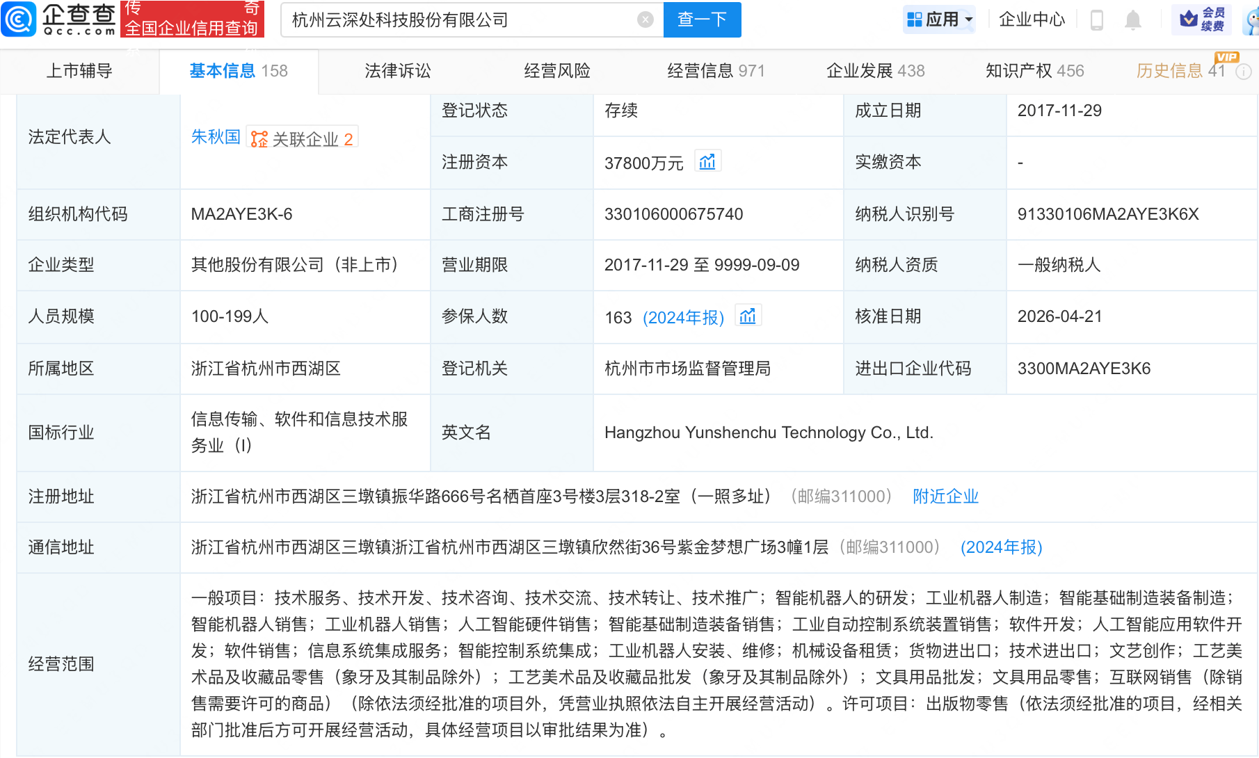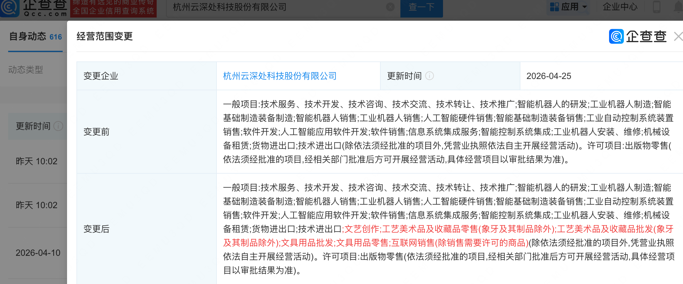 企查查APP显示,近日,杭州云深处科技股份有限公司发生工商变更,经营范围新增文艺创作、工艺美术品及收藏品零售(象牙及其制品除外)、工艺美术品及收藏品批发(象牙及其制品除外)等,同时主要人员发生变更陈都灵最新性感照片。企查查信息显示,该公司成立于2017年,注册资本3.78亿元美女网图背景 私照片高冷全身的视频下载。