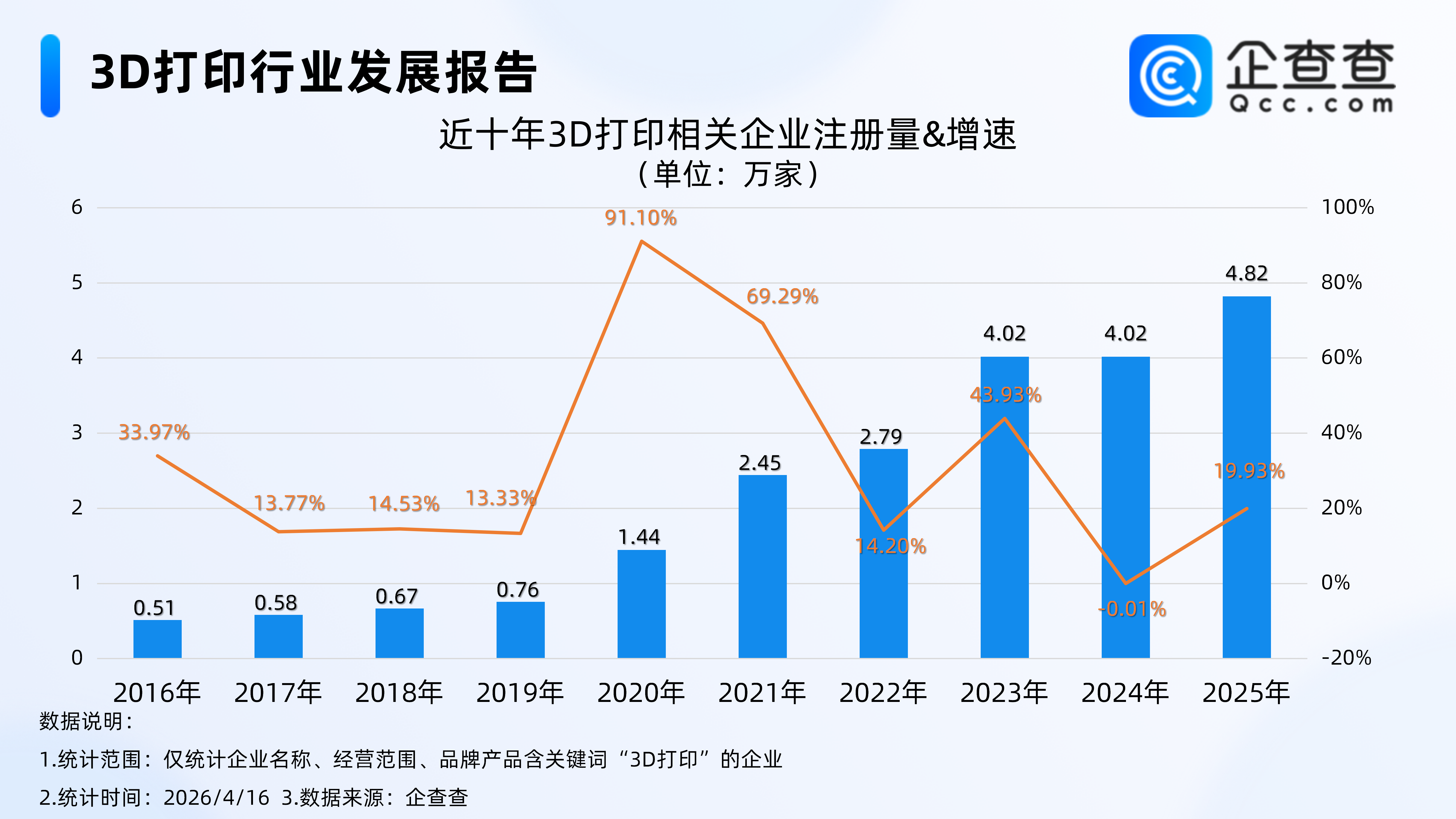 企查查数据显示,近十年,国内3D打印相关企业注册量整体呈逐年上涨趋势女性私处hpv感染图片。2016年至2019年,年注册量保持在0.5万家至0.8万家之间,增速相对平稳中央电视台主持人李红多大岁数,是哪里人。2020年注册量跃升至1.44万家,同比增长91.10%,创近十年注册增速峰值;2023年-2025年连续3年注册量在4万家以上,其中2025年注册量同比增长19.93%至4.82万家,创近十年注册量新高性感图片部位图。