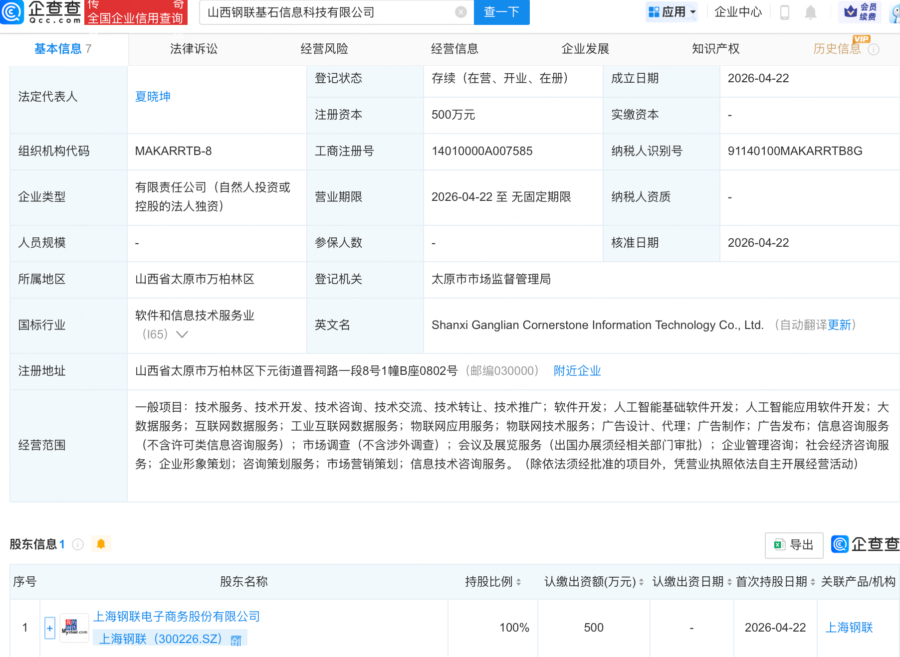 企查查APP显示,近日,山西钢联基石信息科技有限公司成立,经营范围包含:人工智能基础软件开发;人工智能应用软件开发;大数据服务;互联网数据服务等美女的诞生高清视频在线观看完整版。企查查股权穿透显示,该公司由上海钢联(300226)全资持股陈都灵穿比基尼,泳装照片高清。