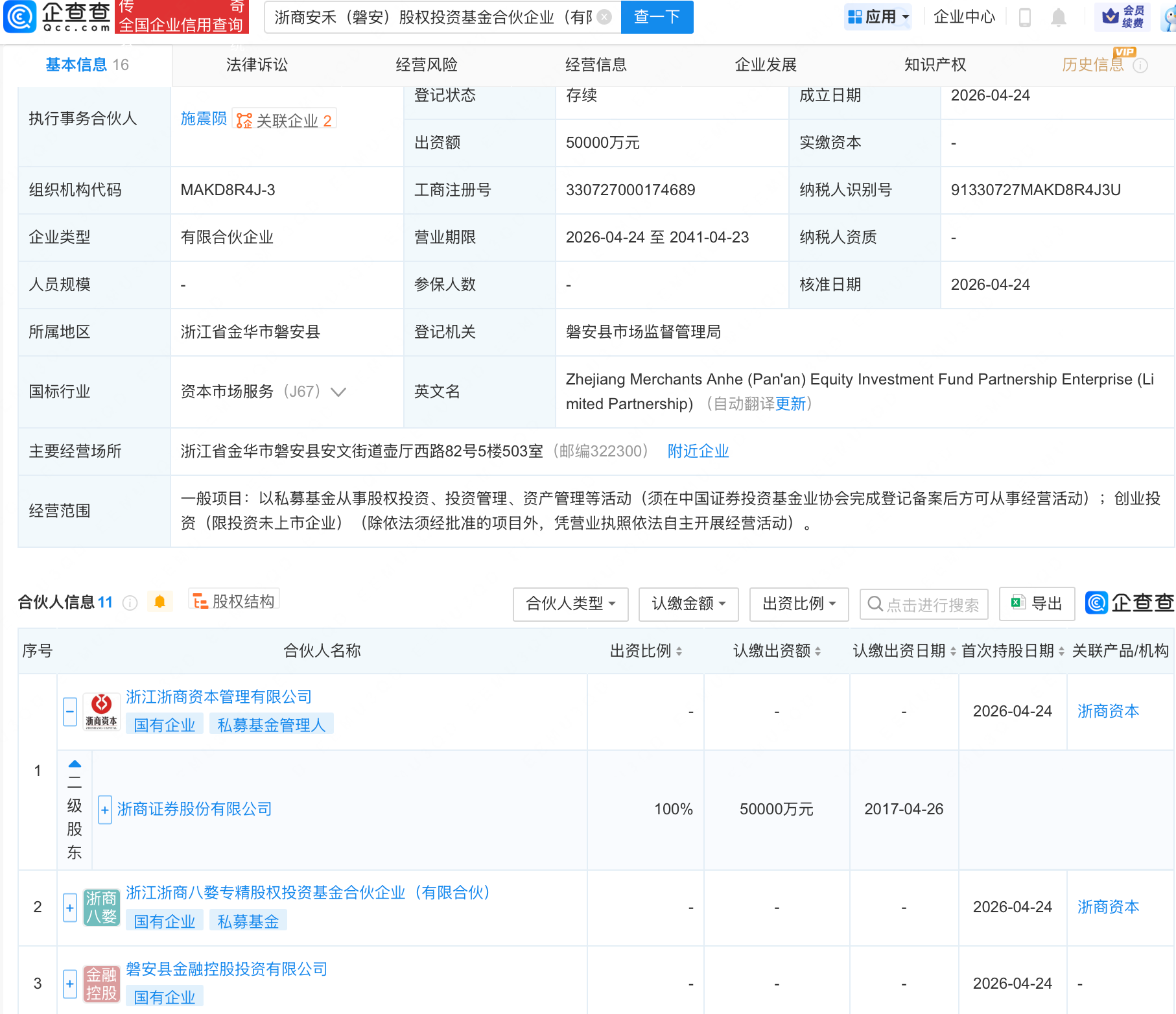 企查查APP显示,近日,浙商安禾(磐安)股权投资基金合伙企业(有限合伙)成立,经营范围包含:以私募基金从事股权投资、投资管理、资产管理等活动美女网图私照片可爱卡通。企查查股权穿透显示,该企业由浙商证券(601878)全资子公司浙江浙商资本管理有限公司等共同出资四十岁的女人怎么夸。